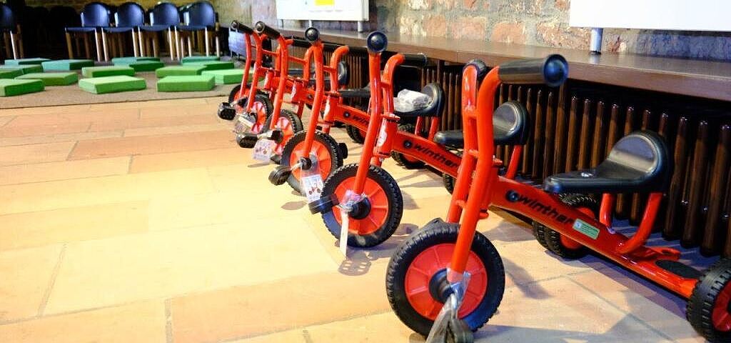 Die Abschlussveranstaltung des Projekts fand am Freitag, 19. September, im Theodor-Zink-Museum statt. Oberbürgermeisterin Beate Kimmel ehrte die teilnehmenden Gruppen bei einer kleinen Feierstunde, vergab Urkunden und Präsente – so gab es für jede teilnehmende Gruppe ein Dreirad vom ADFC. „Alle eingereichten Beiträge zeigen eindrucksvoll, wie intensiv die Kinder ihren täglichen Weg zur Kita wahrnehmen und mit welcher Leidenschaft sie sich für Wege zu Fuß, mit dem Rad oder mit dem Roller begeistern können“, freute sich die Oberbürgermeisterin über das gelungene Projekt. „Den Erzieherinnen und Erziehern danke ich für das großartige Engagement, die Wege und Kunstwerke gemeinsam mit den Kindern so kreativ und detailgenau erarbeitet zu haben.“